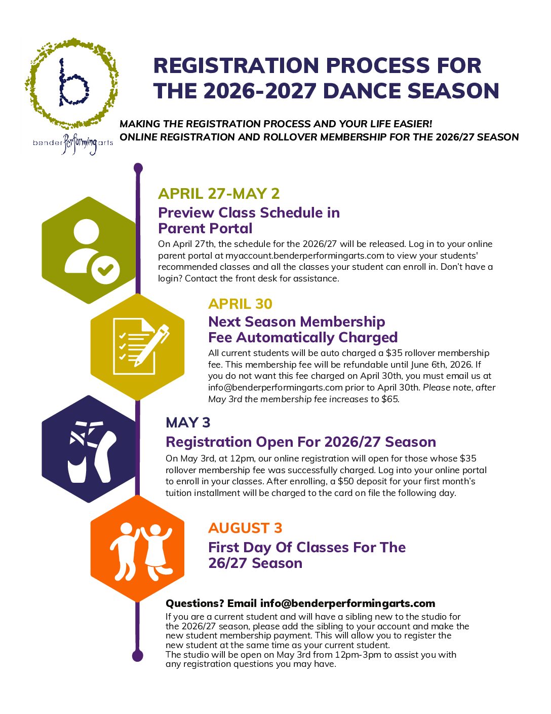 If you have any questions regarding levels, placement, class suggestions etc. please email Brittany Morse at bmorse@benderperformingarts.com.