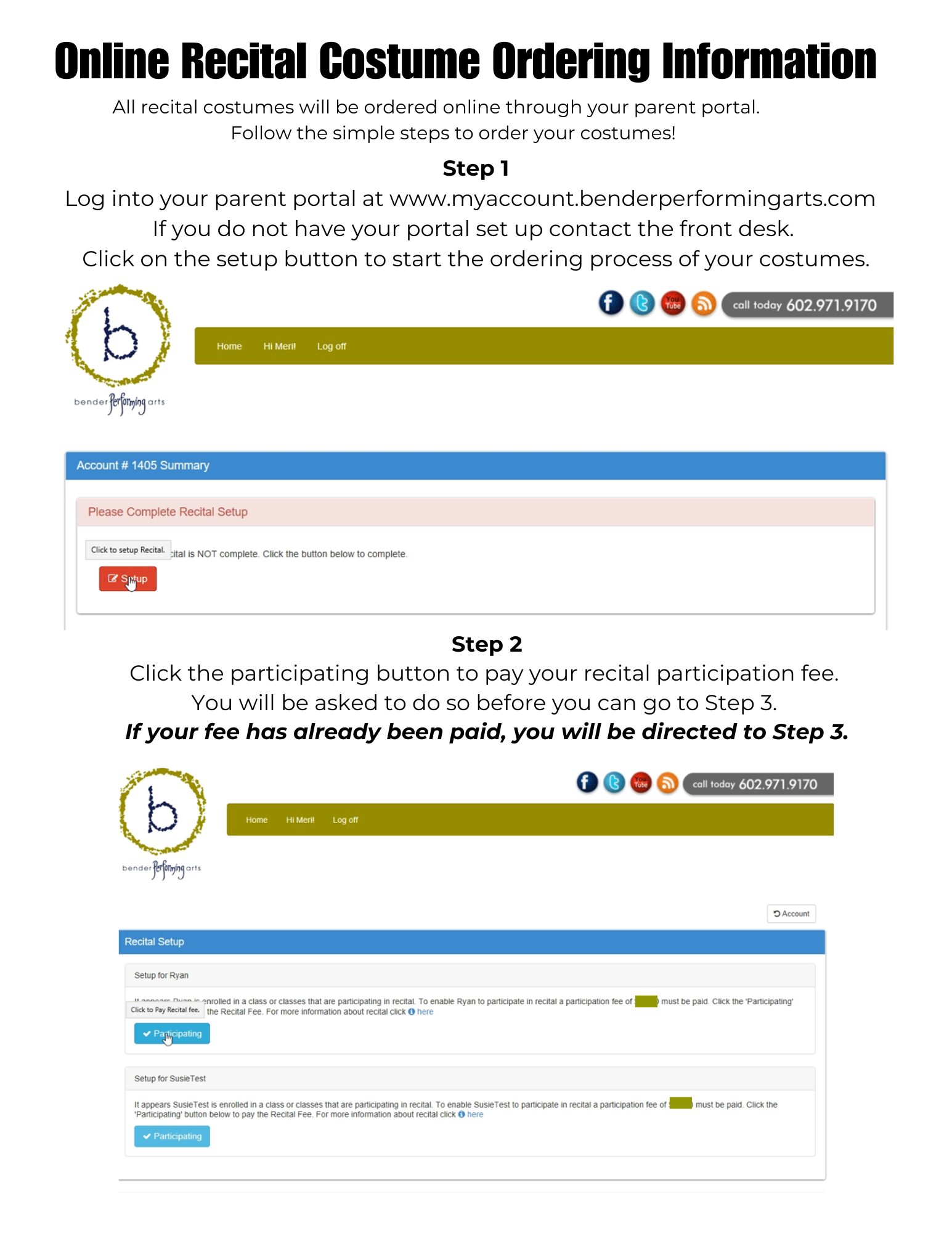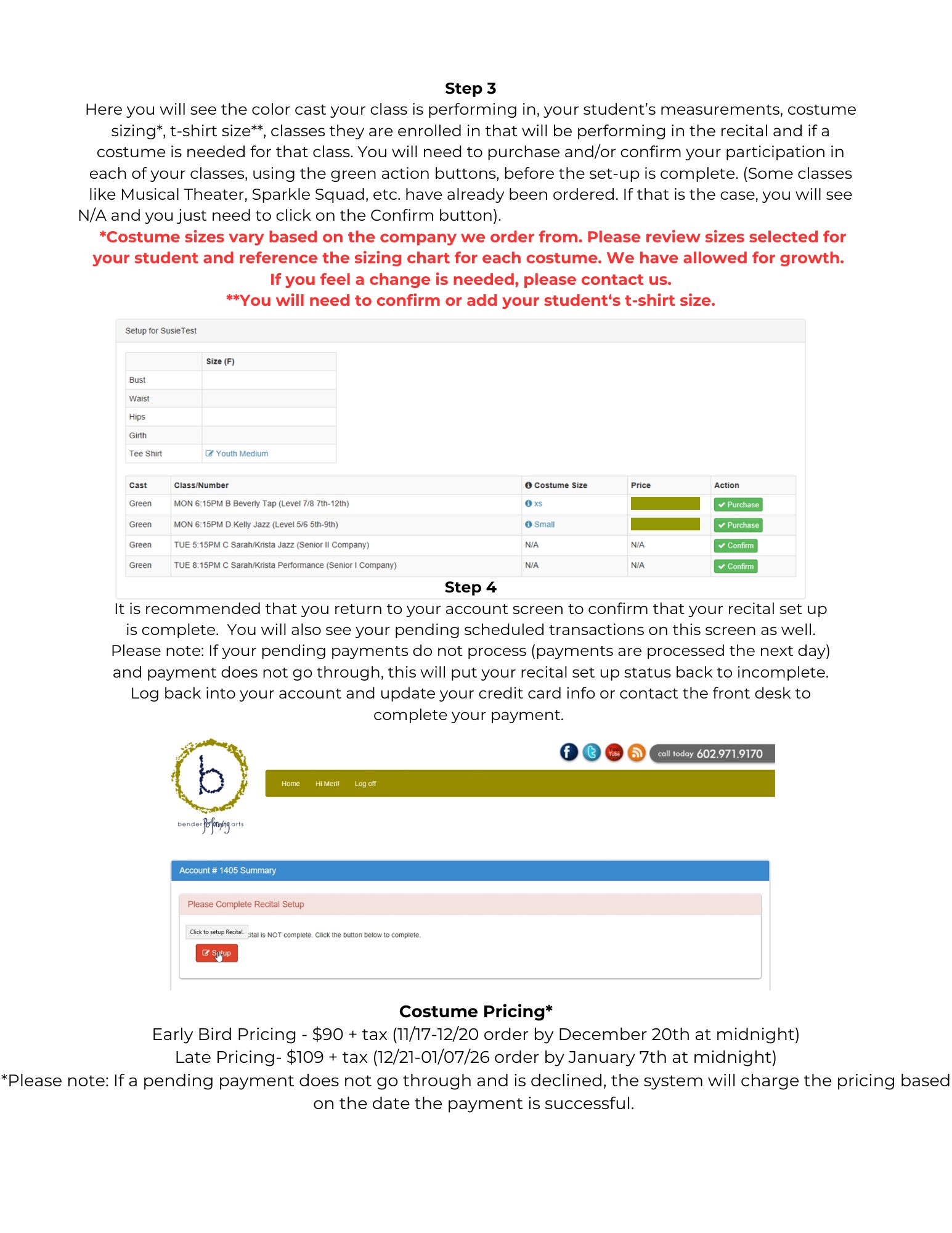 Costume ordering for our annual dance recital is now open on your parent portal. You can view instructions below on how to order. Remember for discount pricing place your order before December 20.